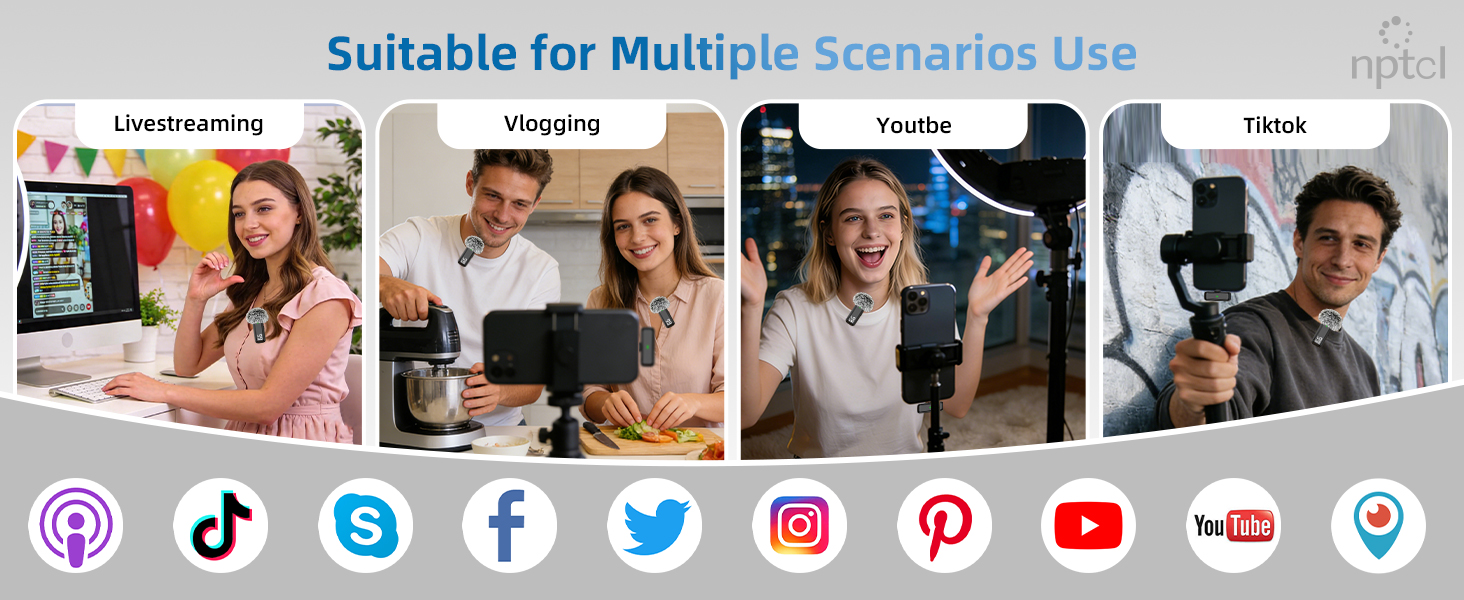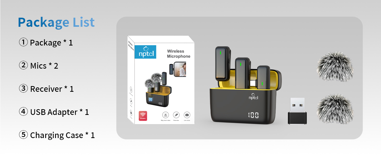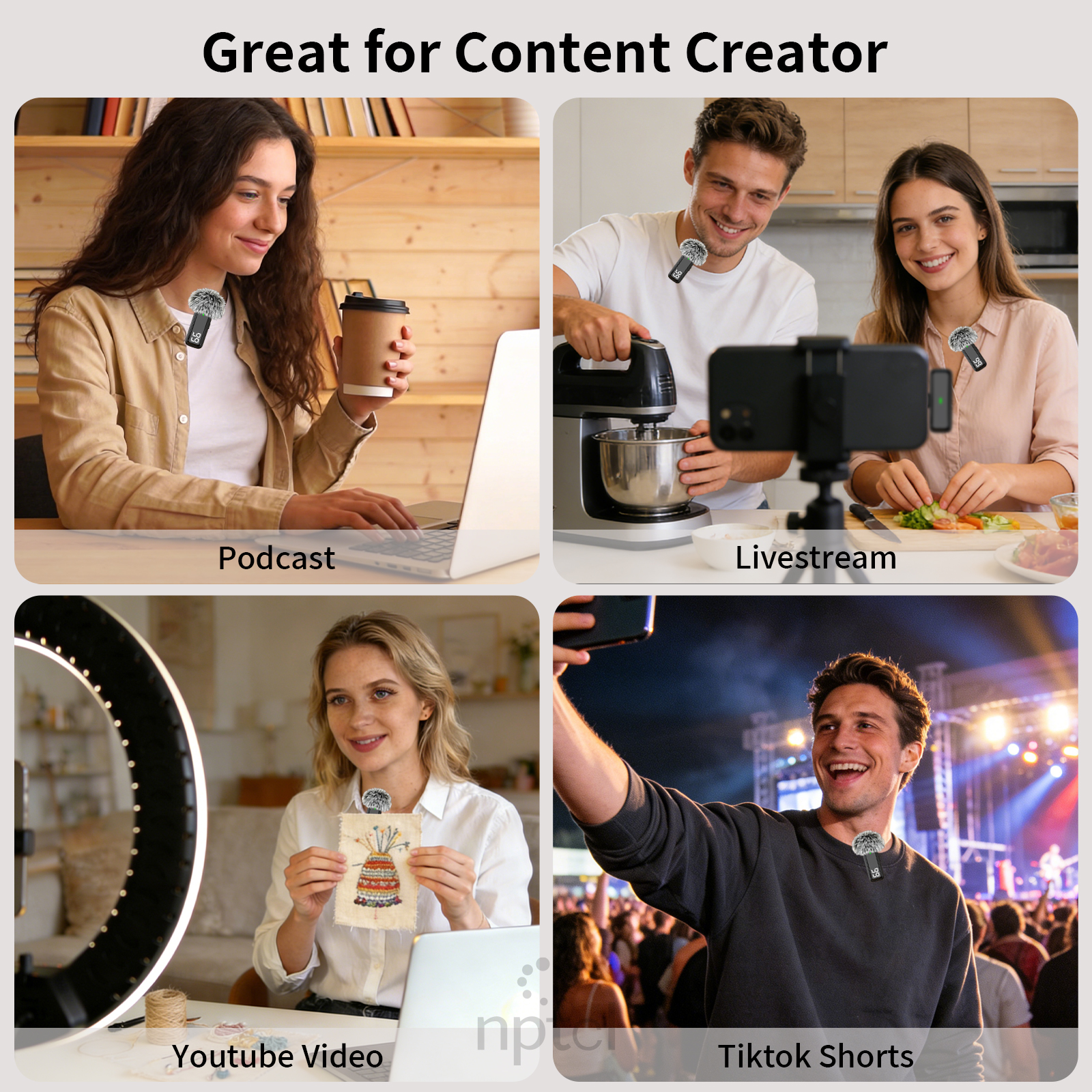 • Compatible with USB & USB C Devices and iPhone: Our upgraded dual wireless lavalier microphones are compatible with Android Phones, iPhone 15/16, iPad(USB-C), Type c iPhone, Macbook and more. With USB adapter, you can use the mic with laptop, computer, Pc. You can hold the mini lav mic by hand or clip the lapel mic to your shirt. The NPTCL wireless lavalier mics are suitale for video recording, podcasting, vlogging, tiktok, youtube, instagram, facebook and more. Upgrade your recording experience with the NPTCL Wireless Android Lapel Microphone today!